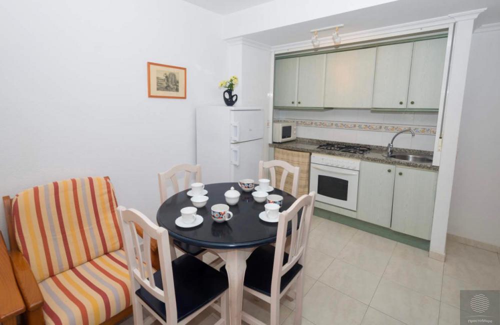 Acogedores apartamentos para 3-4 personas. Gran terraza con vistas al mar. Primera linea. Preciosa playa de arena.