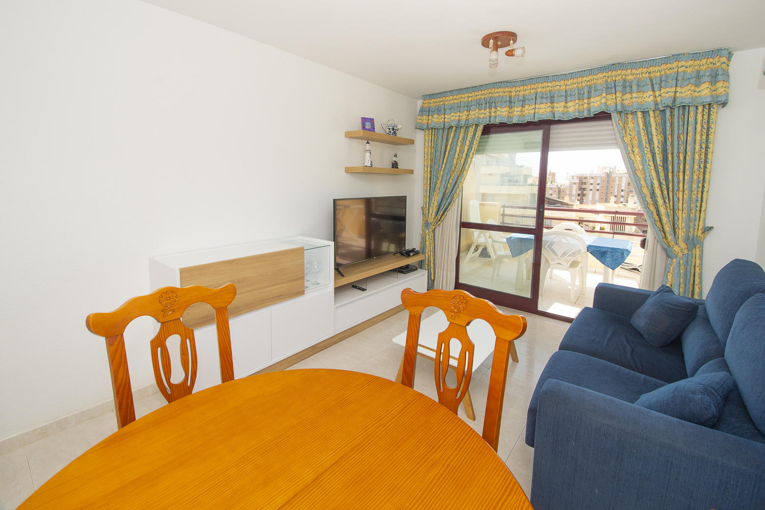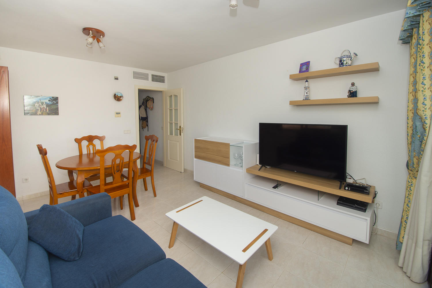 El salón tiene un sofá cama.