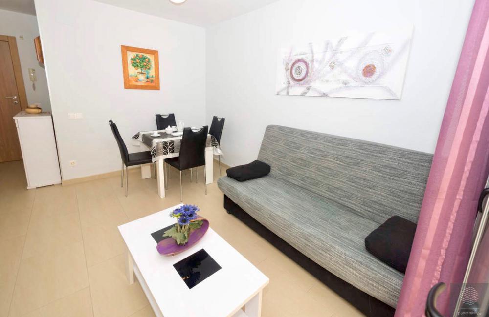 El conjunto residencial se encuentra en primera línea, una hermosa zona verde. Apartamento 1 dormitorio + salón, para 3-4 personas. Terraza. Tres piscinas, minigolf y cancha de tenis en el territorio cerrado de la casa.