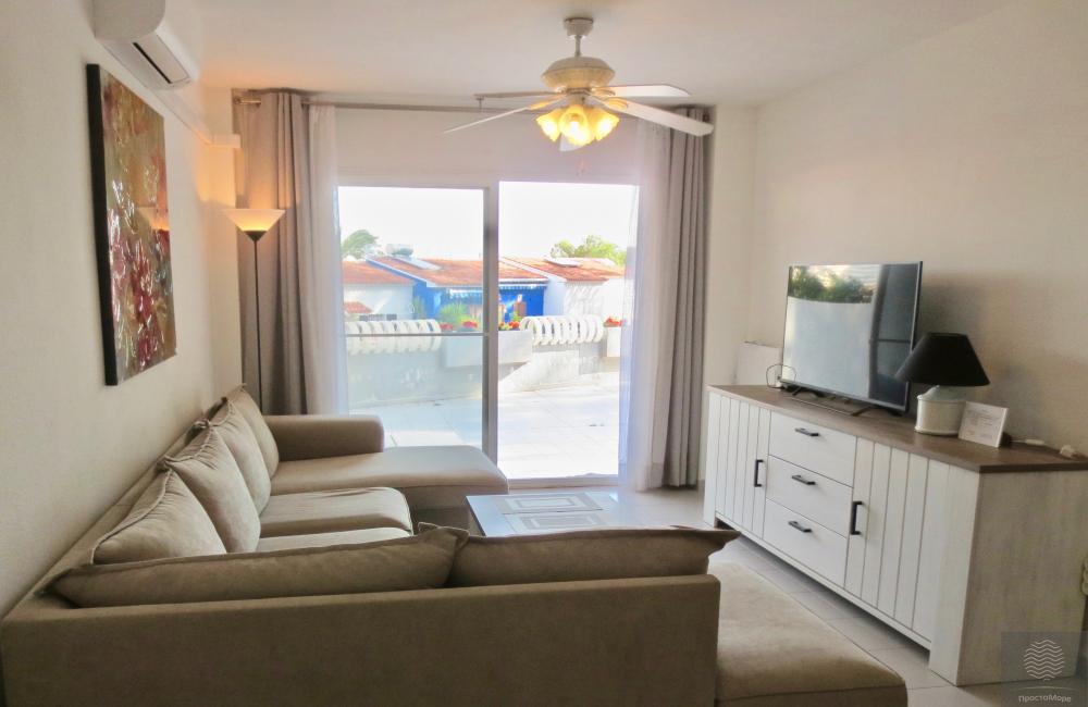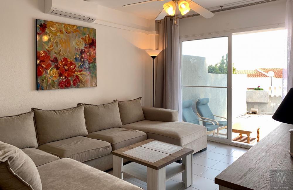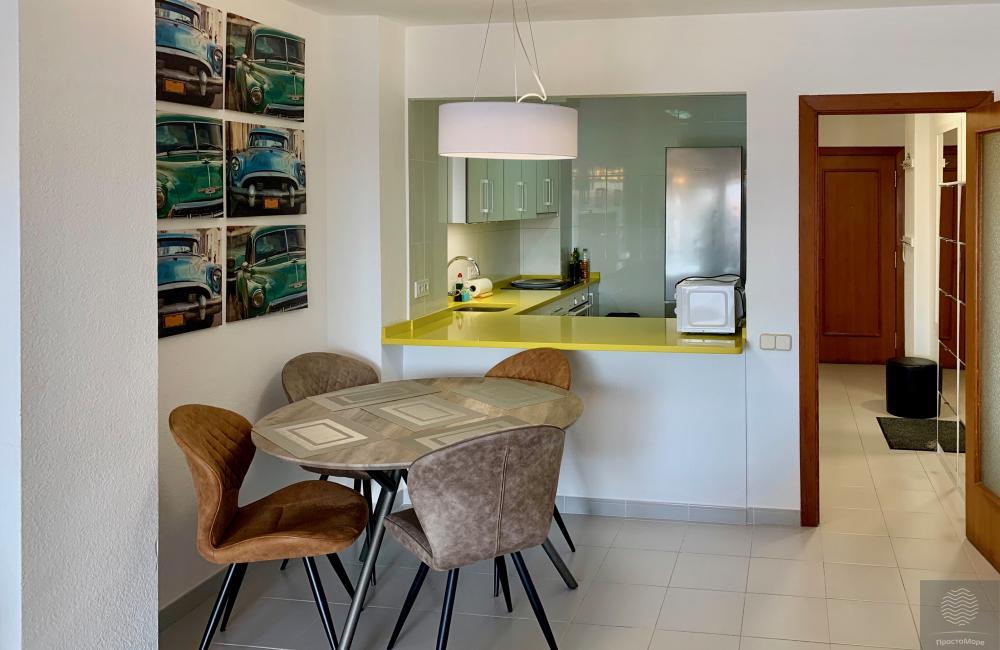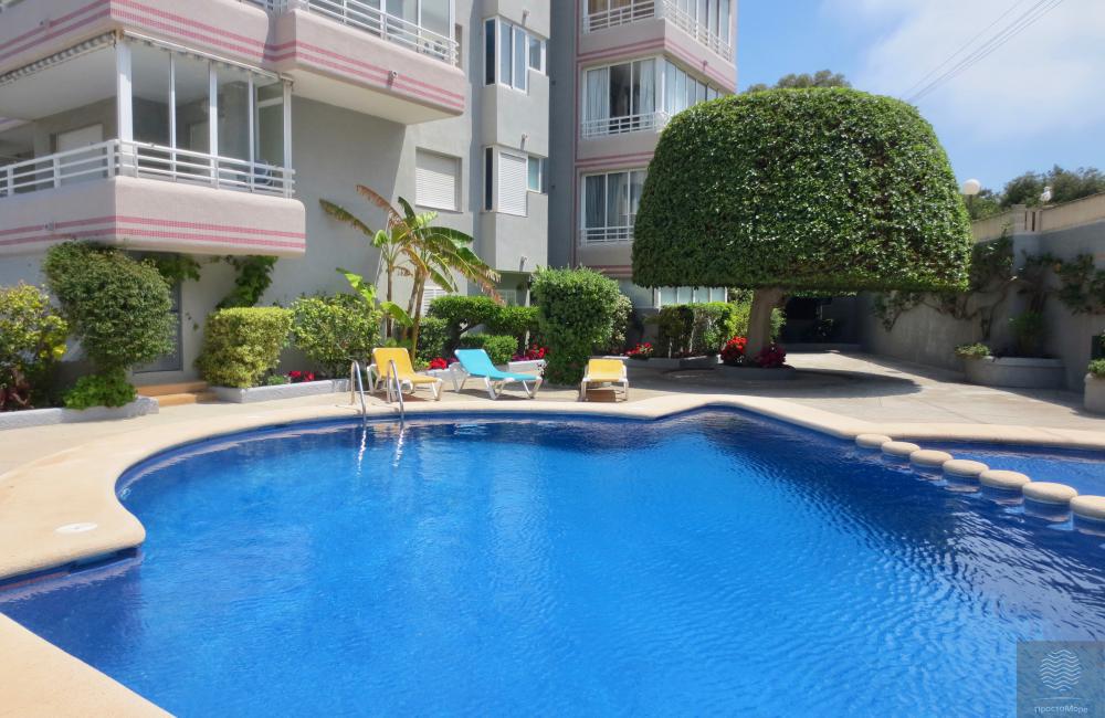 La terraza da al bosque – parque natural Peñón de Ifach, todas las ventanas de los apartamentos dan a la terraza. La ubicación tranquila del apartamento le permite disfrutar de sus vacaciones en una gran terraza. Es agradable caminar por el terraplén en las tardes cálidas, hay muchos cafés, restaurantes y tiendas aquí. El apartamento está equipado con caja fuerte. En el territorio cerrado del edificio hay una piscina para residentes.