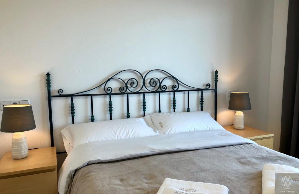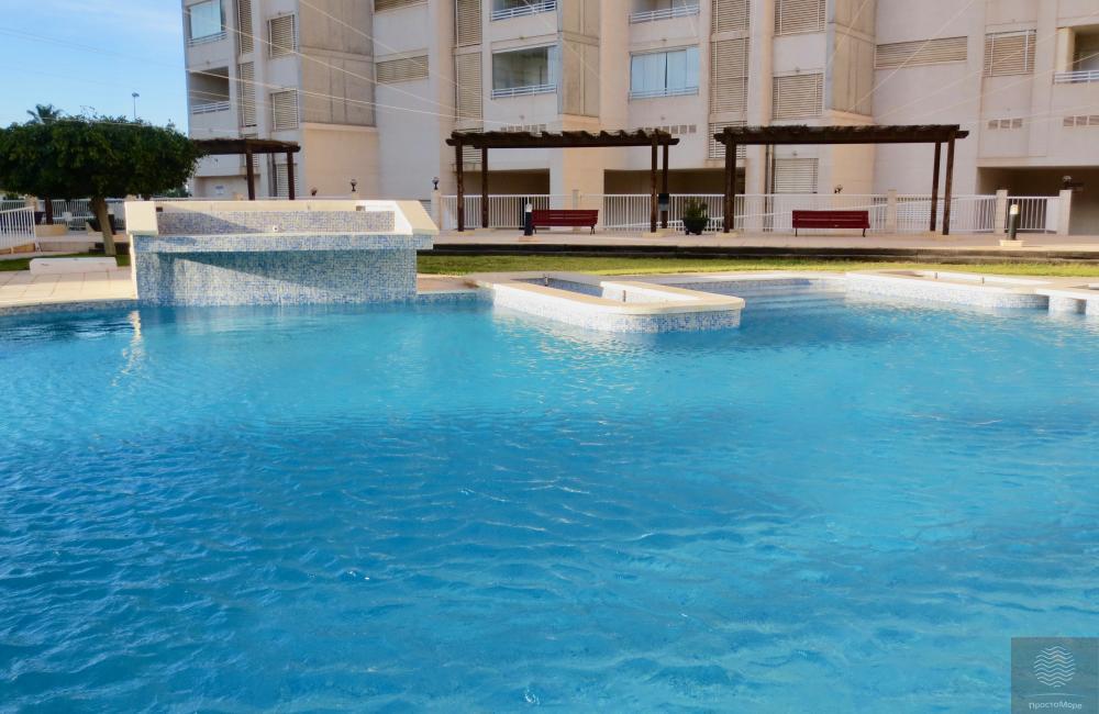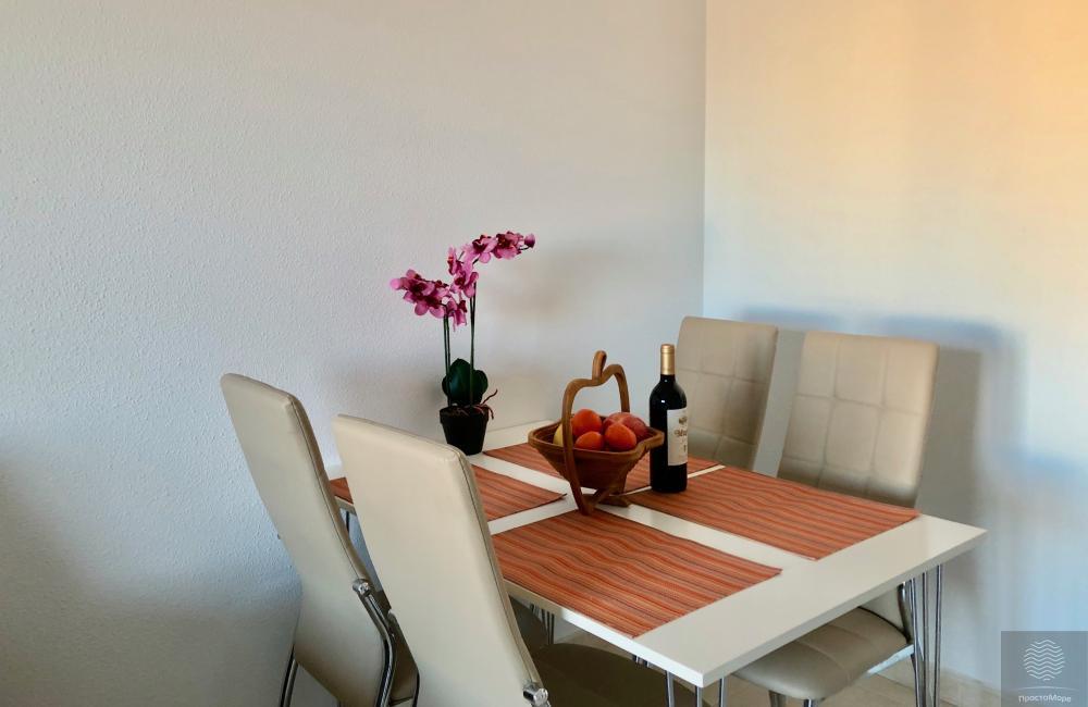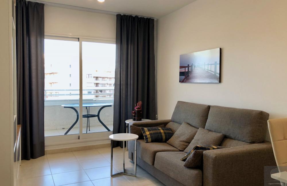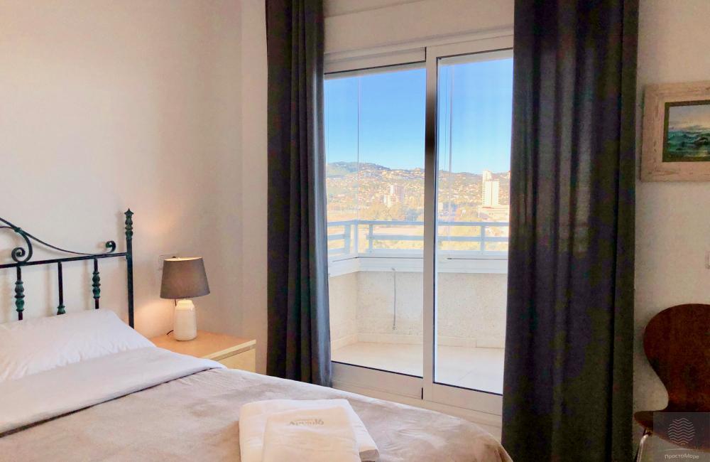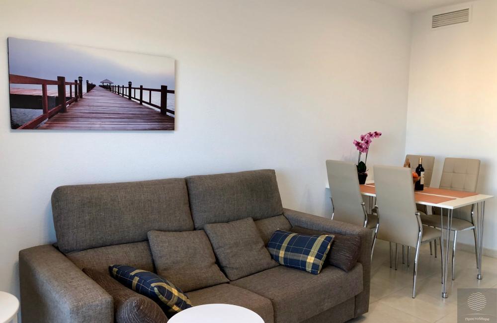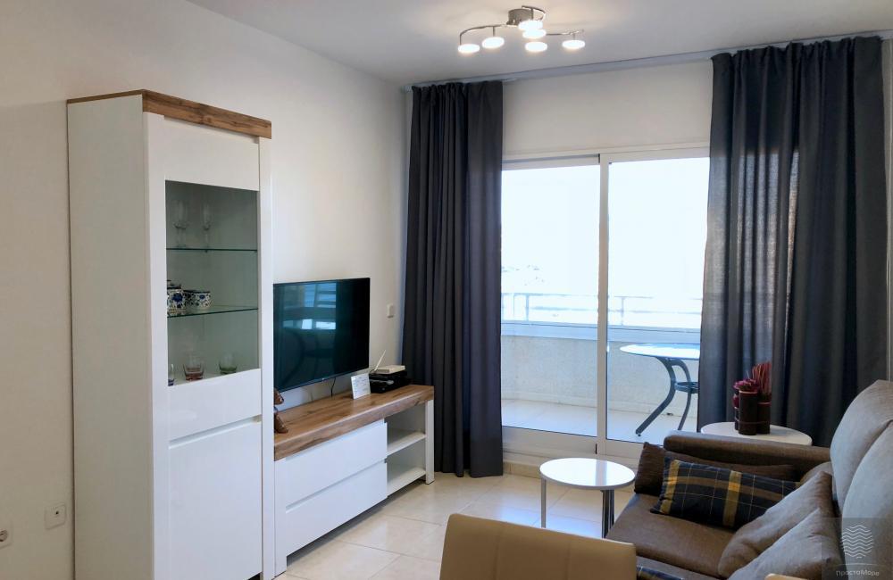 Amplios y luminosos pisos en conjunto residencial en segunda línea. Terraza con impresionantes vistas al mar ya la montaña. 1 dormitorio, para 2-3 personas. La ubicación central de la casa. Amplia zona verde del conjunto residencial.