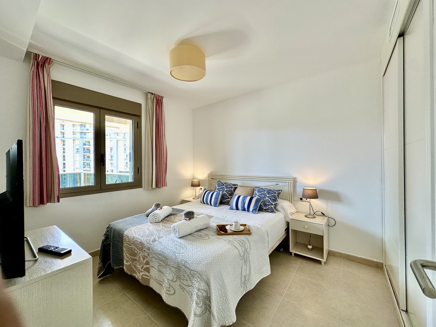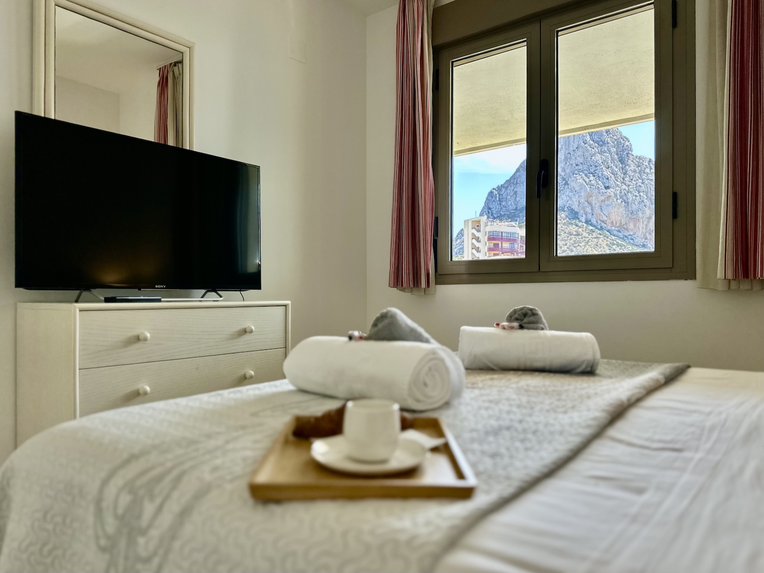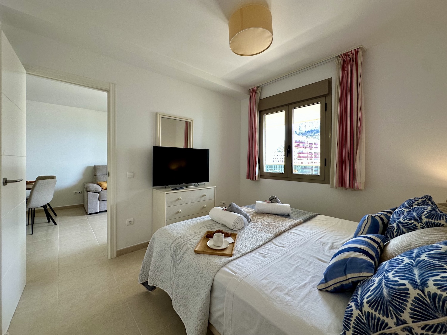 Moderno piso de un dormitorio diseñado para alojar cómodamente a dos adultos y un niño. El complejo residencial Larimar está situado en primera línea, a 5 minutos a pie de la playa. El piso está en la 9ª planta. Excelente vista al mar. Totalmente climatizado, cocina equipada con todo lo necesario. Amplia terraza. La casa está situada cerca del paseo peatonal. Cada año las playas de Calpe reciben la «bandera azul». Todo está a poca distancia – supermercado a 5 minutos a pie, parada de autobús, cafeterías y restaurantes a lo largo del paseo marítimo. Piscina en el territorio cerrado de la casa. Conserje. Internet WiFi (fibra óptica) está incluido en el alquiler. El puerto de Calpe con sus famosos restaurantes de pescado está a 5 minutos a pie. Hay un paseo peatonal a lo largo de toda la playa con cafés, restaurantes y tiendas.