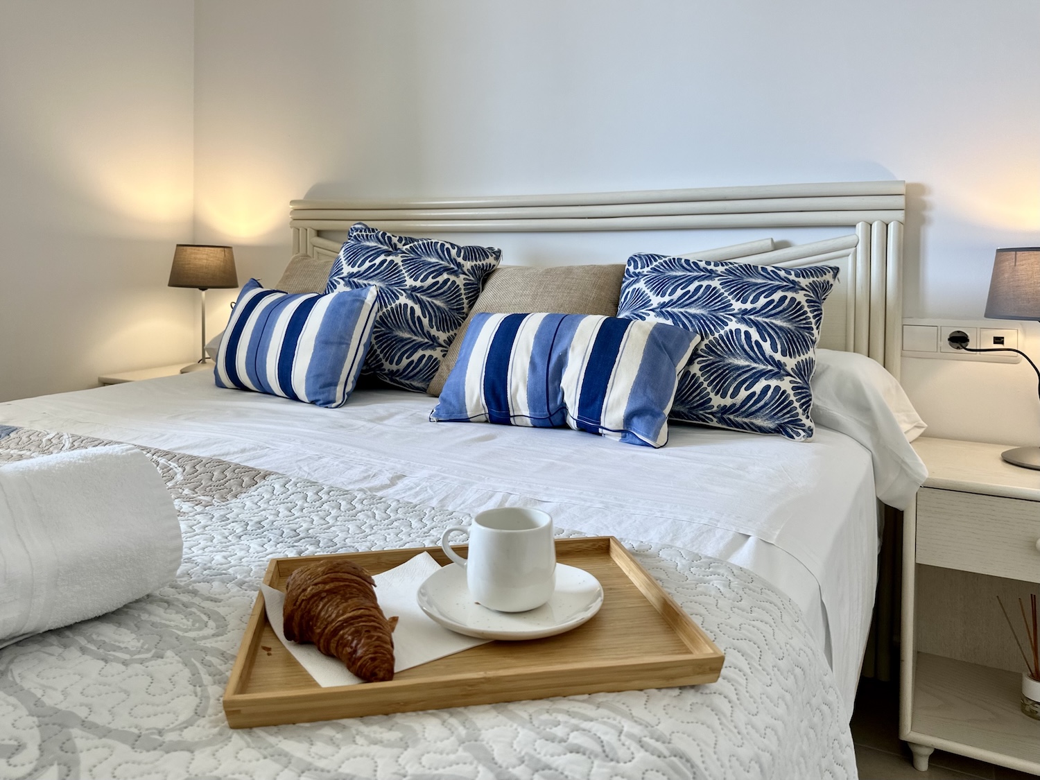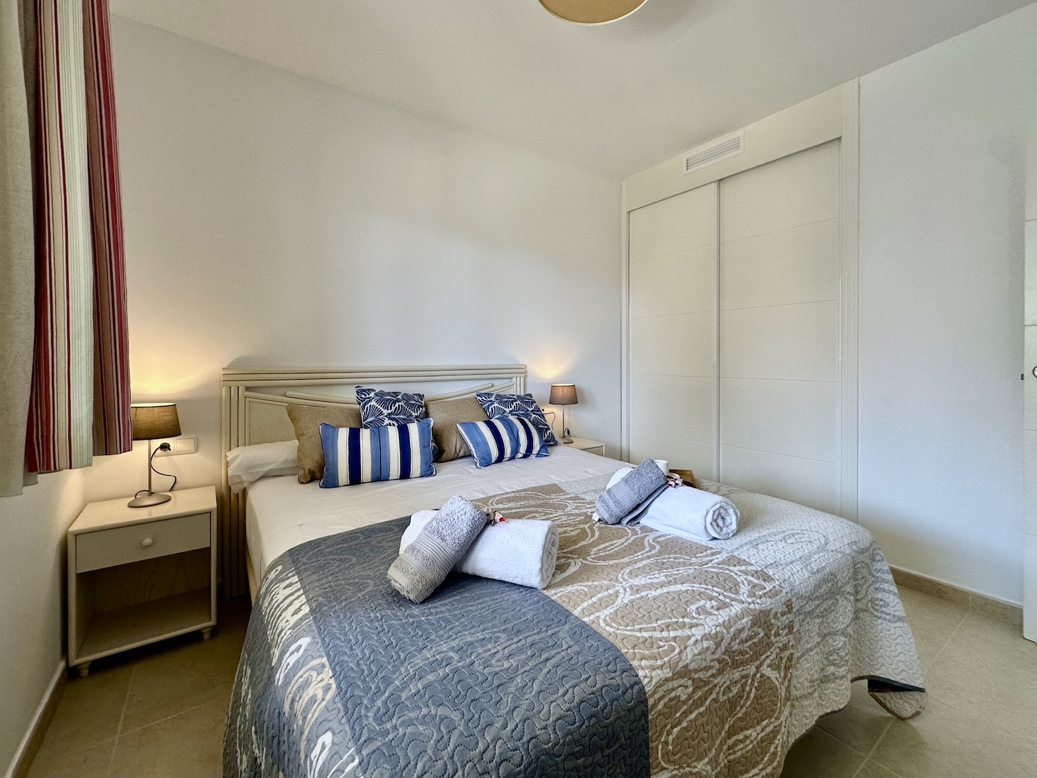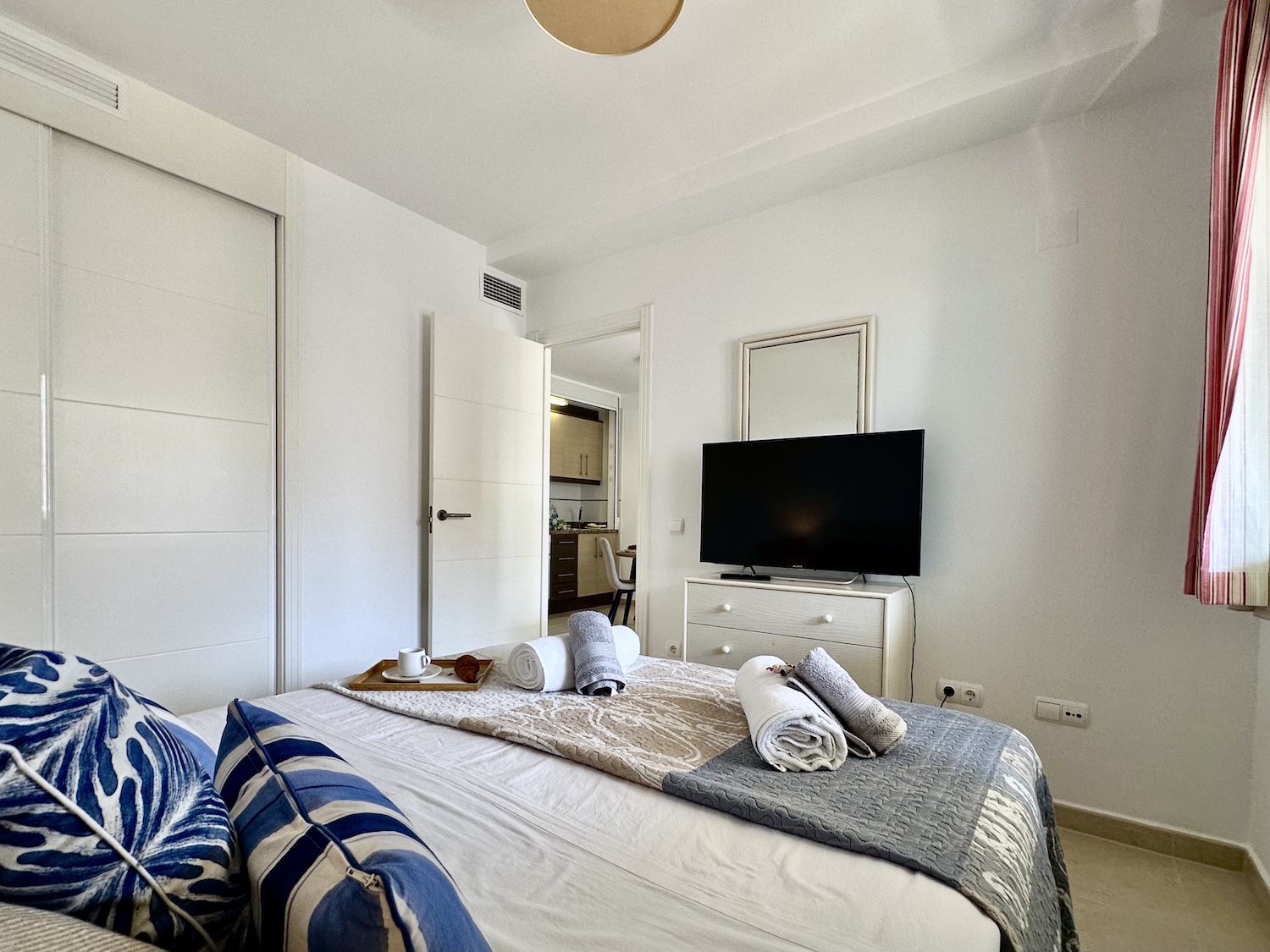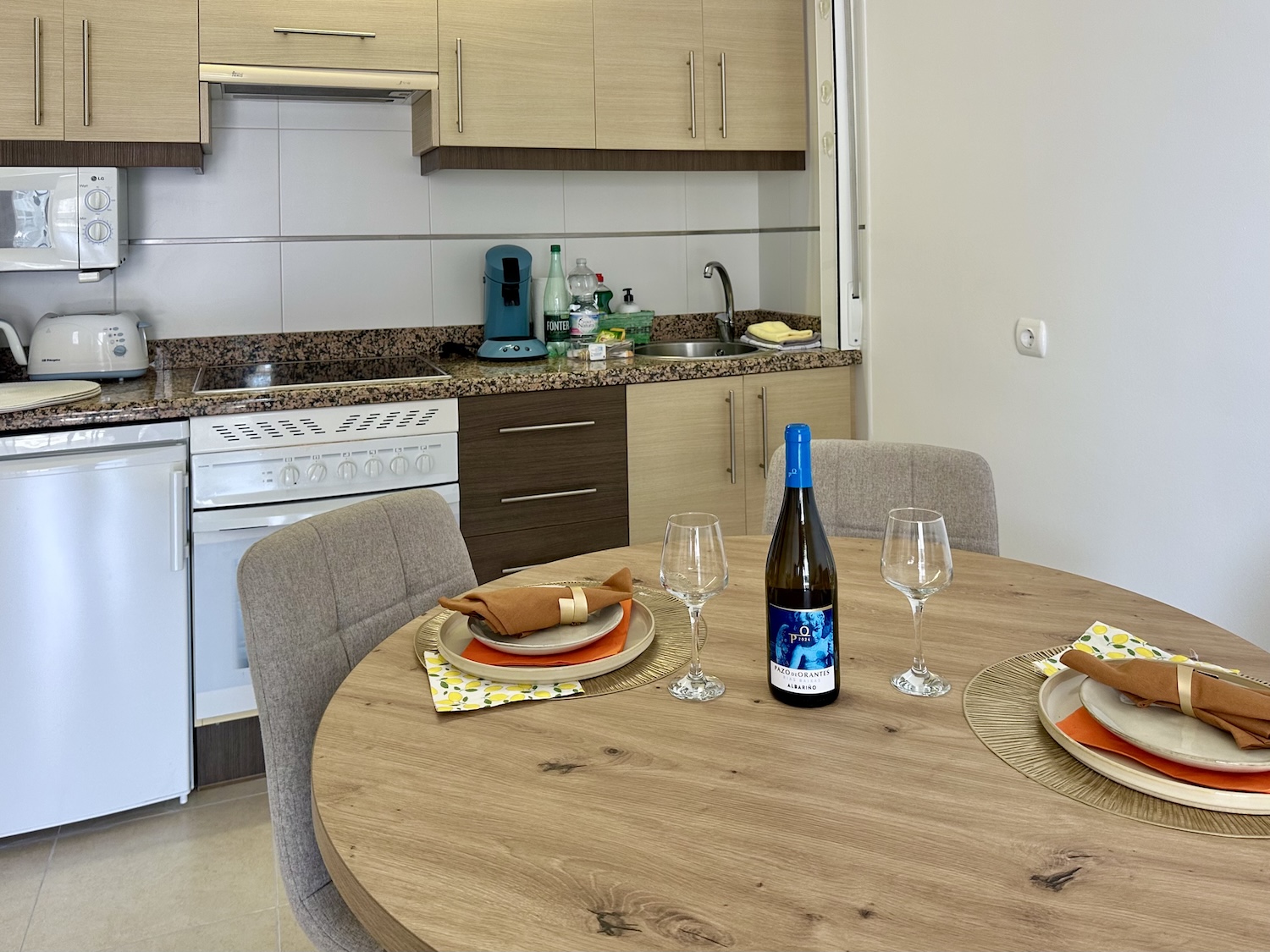 Un moderno y confortable apartamento de un dormitorio diseñado para una estancia confortable de dos adultos y un niño. La planta alta permite admirar las vistas al mar. Gran piscina grande. Internet WiFi (fibra óptica) está incluido en el precio del alquiler.