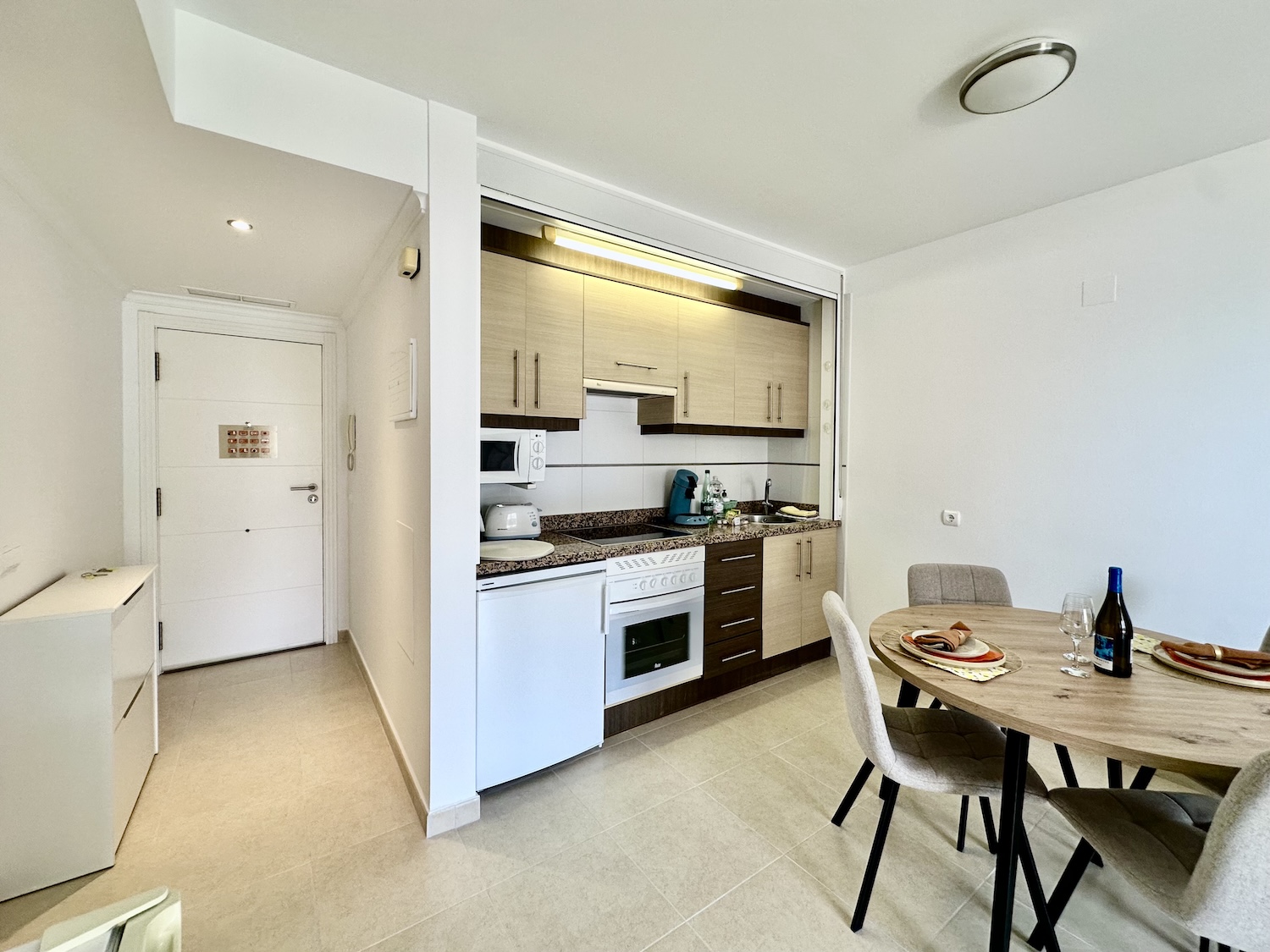 Dispondrá un dormitorio, una terraza con unas vistas al mar y un salón con una mesa y 4 sillas. Hay una cocina totalmente equipada.
