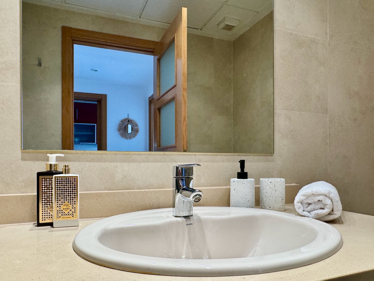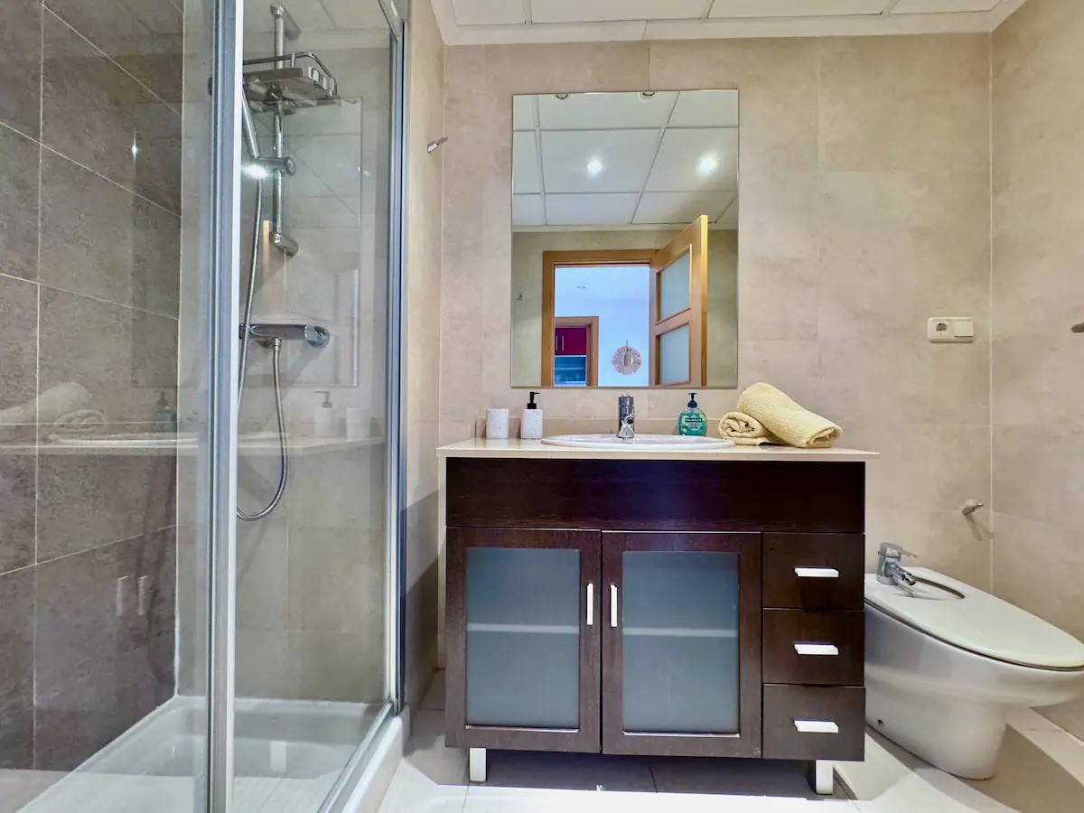 Moderno piso de un dormitorio diseñado para alojar cómodamente a dos adultos y un niño. El complejo residencial Entremares está situado en primera línea, a 5 minutos a pie de la playa. El piso está en la 5ª planta. Excelente vista al mar. Totalmente climatizado, cocina equipada con todo lo necesario. Amplia terraza. La casa está situada cerca del paseo peatonal. Cada año las playas de Calpe reciben la «bandera azul». Todo está a poca distancia – supermercado a 5 minutos a pie, parada de autobús, cafeterías y restaurantes a lo largo del paseo marítimo. Piscina en el territorio cerrado de la casa. Conserje. Internet WiFi (fibra óptica) está incluido en el alquiler. Plaza de aparcamiento propia en el garaje subterráneo del complejo residencial. Los apartamentos están totalmente renovados en 2024. El puerto de Calpe con sus famosos restaurantes de pescado está a 15 minutos a pie. Hay un paseo peatonal a lo largo de toda la playa con cafés, restaurantes y tiendas.