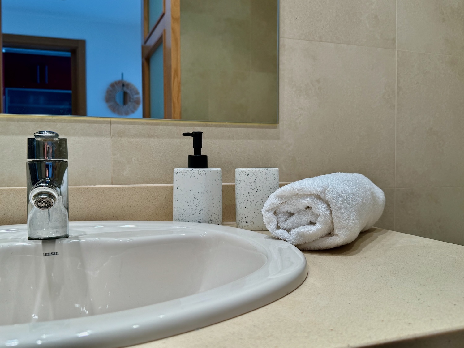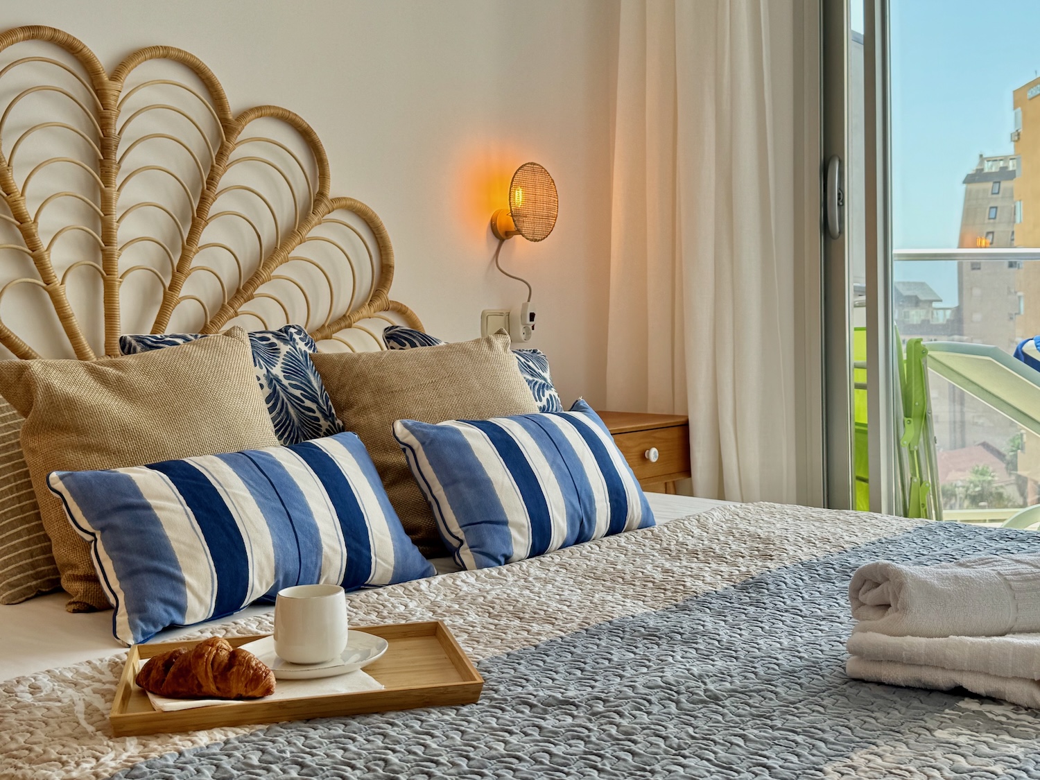 Un moderno y confortable apartamento de un dormitorio diseñado para una estancia confortable de dos adultos y un niño. La planta alta permite admirar las vistas al mar. Gran piscina grande. Garaje e Internet WiFi (fibra óptica) están incluidos en el precio del alquiler.