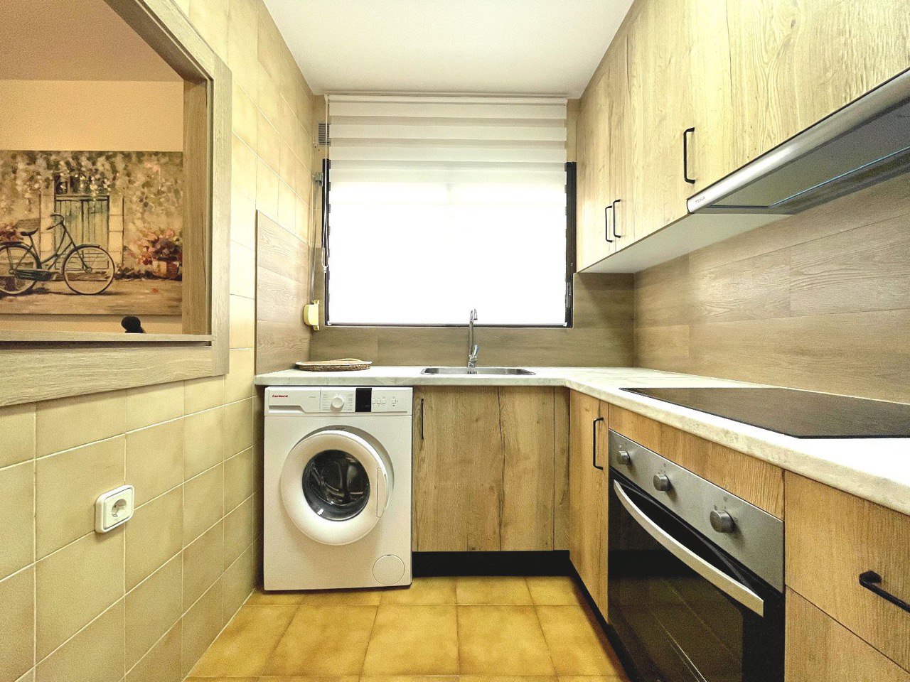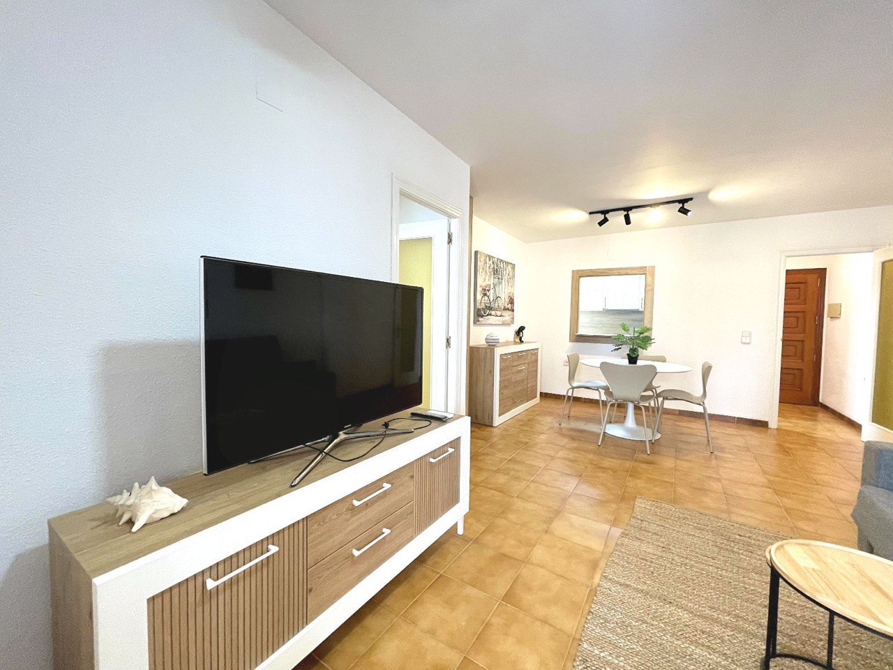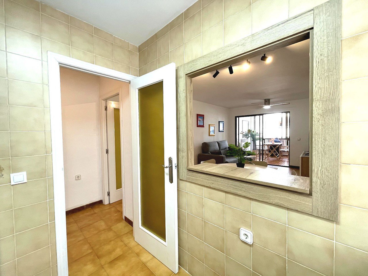 Al ingresar a esta vivienda renovada, te recibirá un acogedor salón/comedor, ideal para relajarte y disfrutar de momentos inolvidables junto al mar. El ventilador de techo aporta frescura en los días cálidos de verano, mientras que la cocina independiente está equipada de manera funcional para preparar tus platos favoritos.