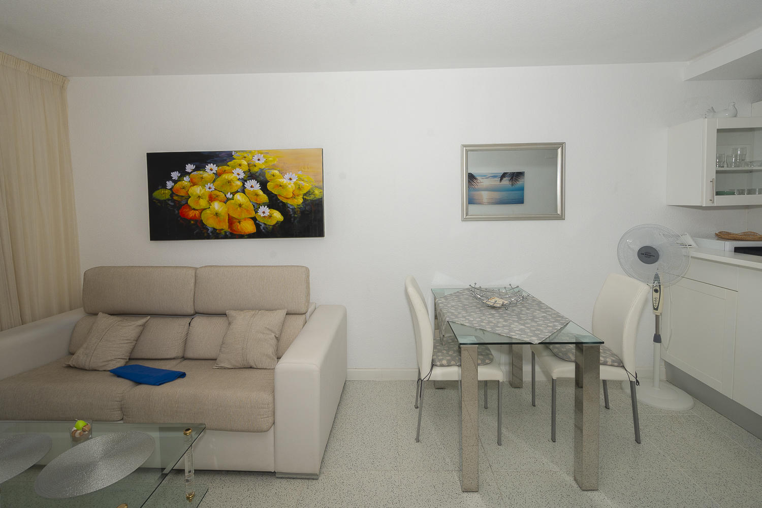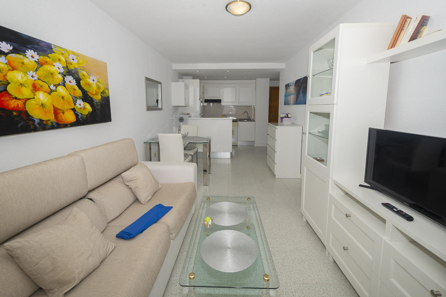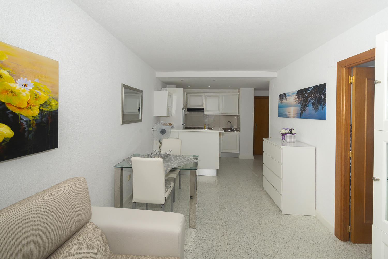La cocina del apartamento ha sido reformada recientemente y está equipada con todo lo necesario para cocinar. El acogedor salón está completamente amueblado.