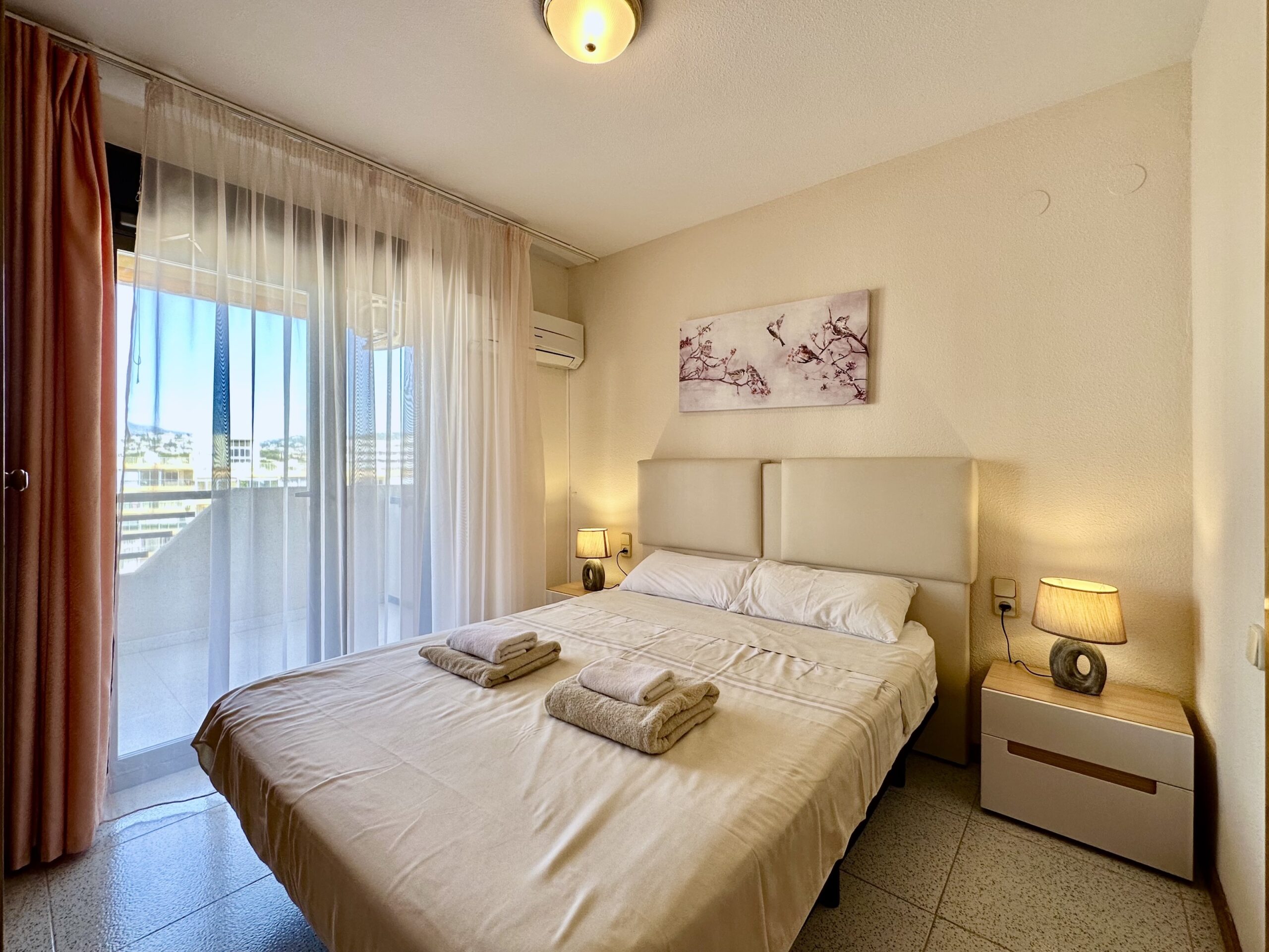 Apartamento de dos dormitorios diseñado para una estancia confortable de 4 personas. El complejo residencial CalpePlace se encuentra en primera línea, el apartamento se encuentra en una 7ª planta. El centro de la ciudad está a 30 minutos a pie. El piso alto le permite admirar las vistas al mar. Dispone de aire acondicionado (solo un dormitorio), la cocina está equipada con todo lo necesario. Gran terraza.