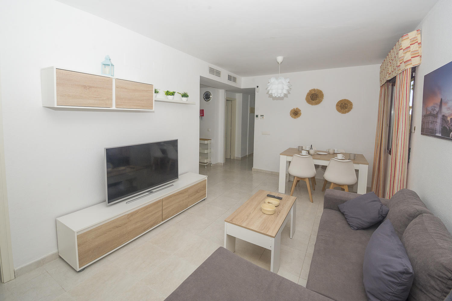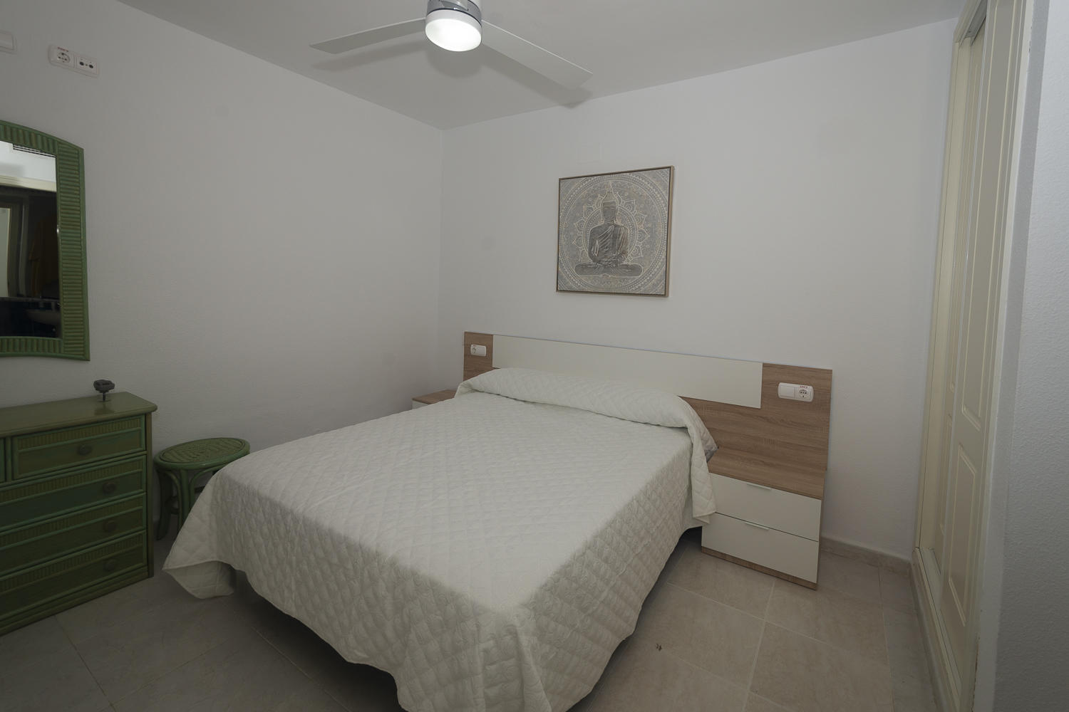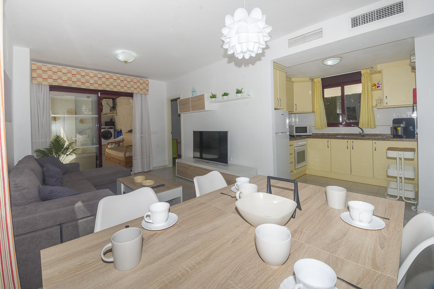 El apartamento de 90 m² está situado en la planta baja del complejo residencial Topacio II y tiene capacidad para cinco residentes.