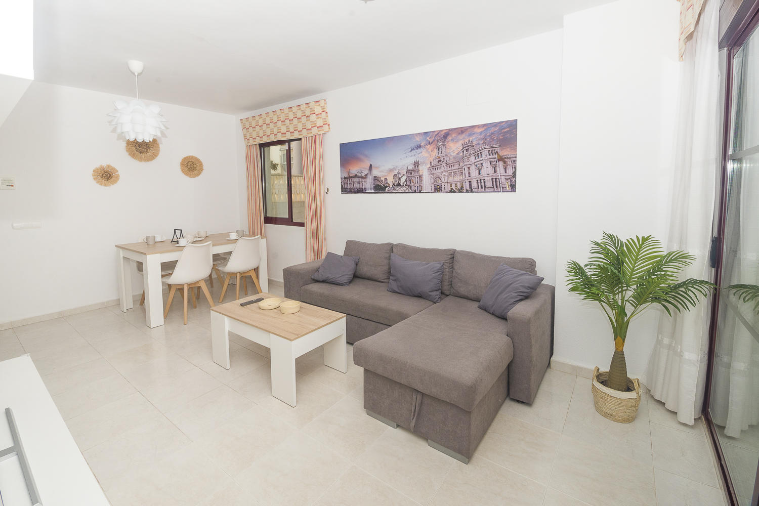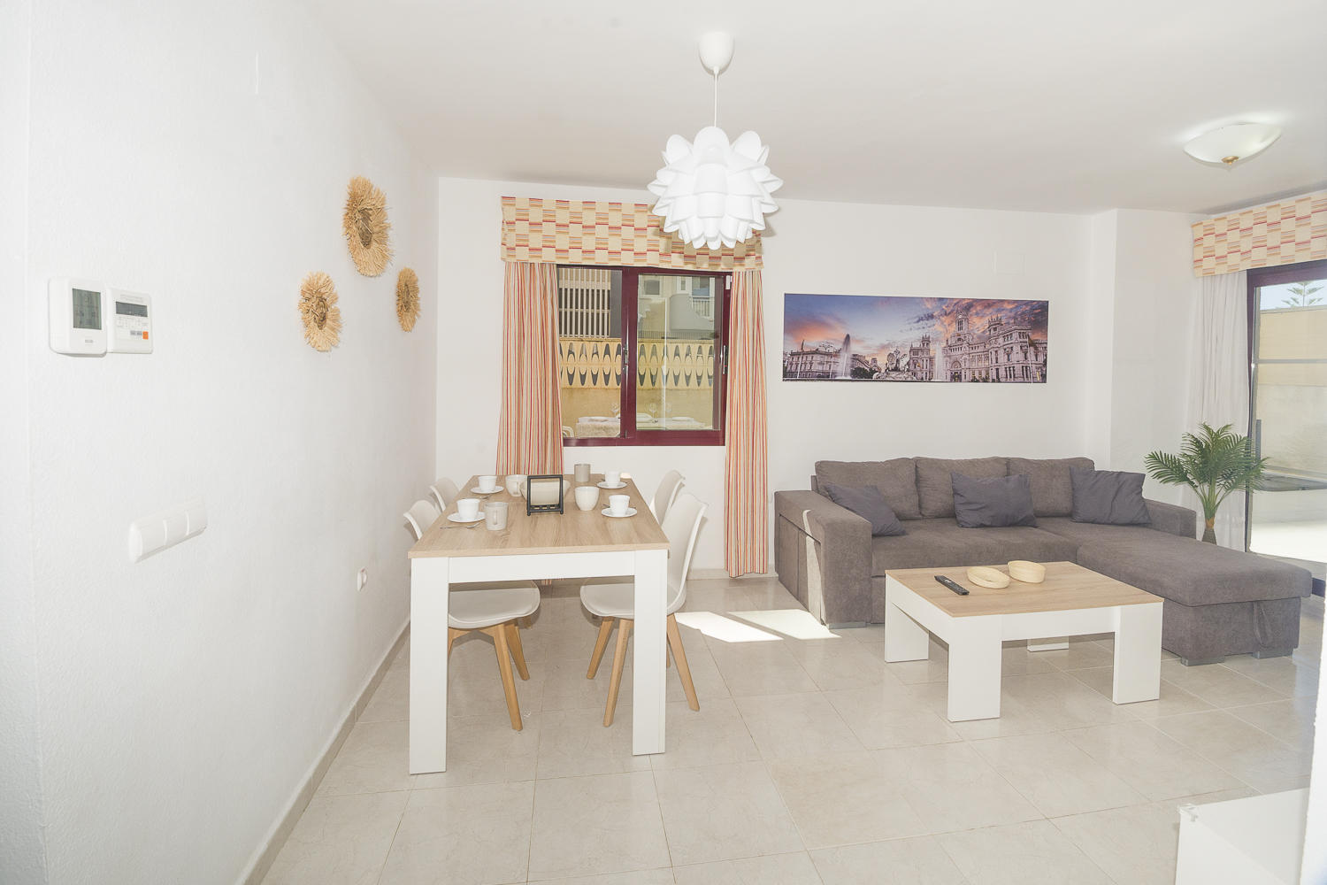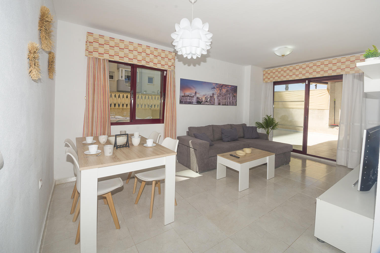 El apartamento de 90 m² está situado en la planta baja del complejo residencial Topacio II y tiene capacidad para cinco residentes.