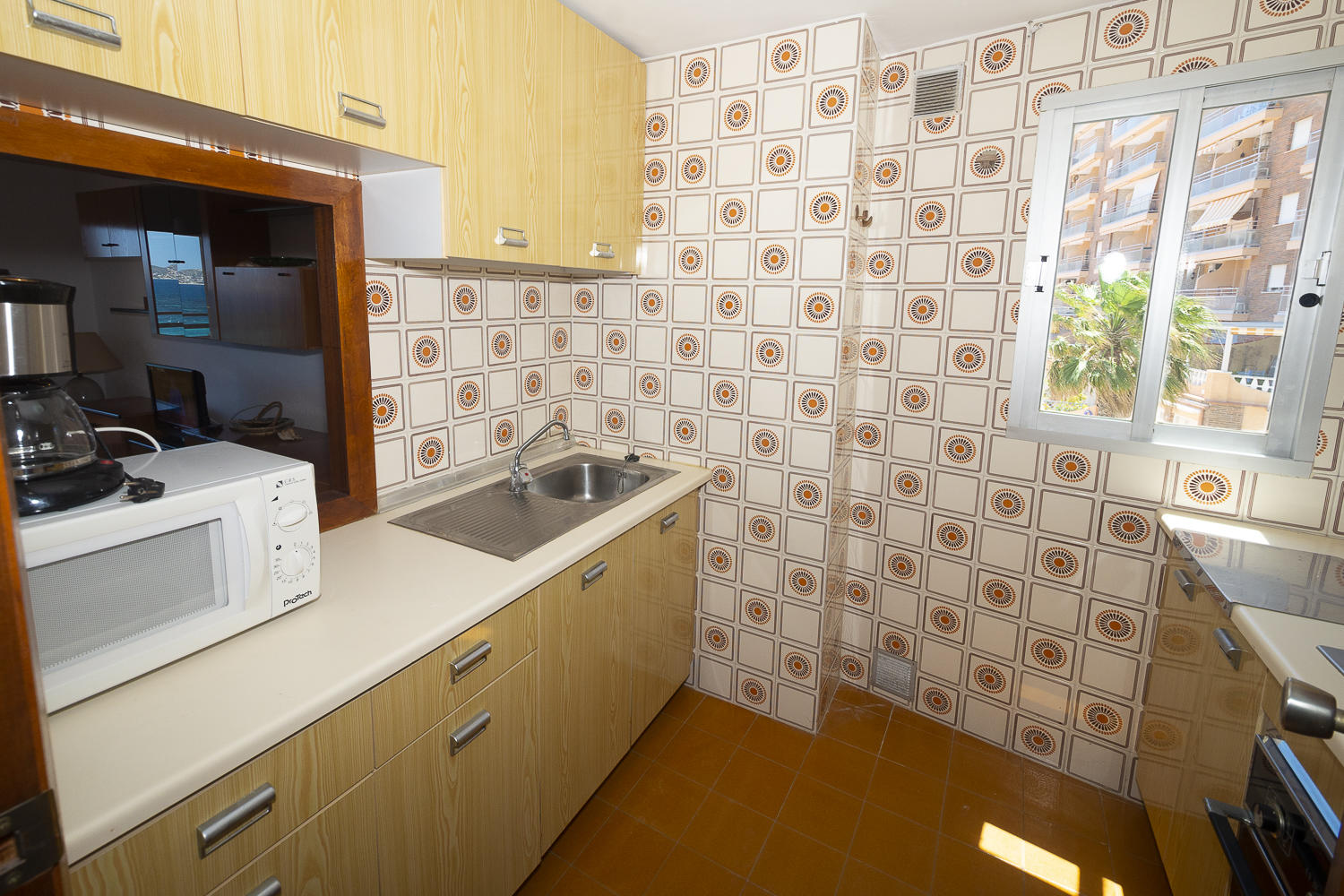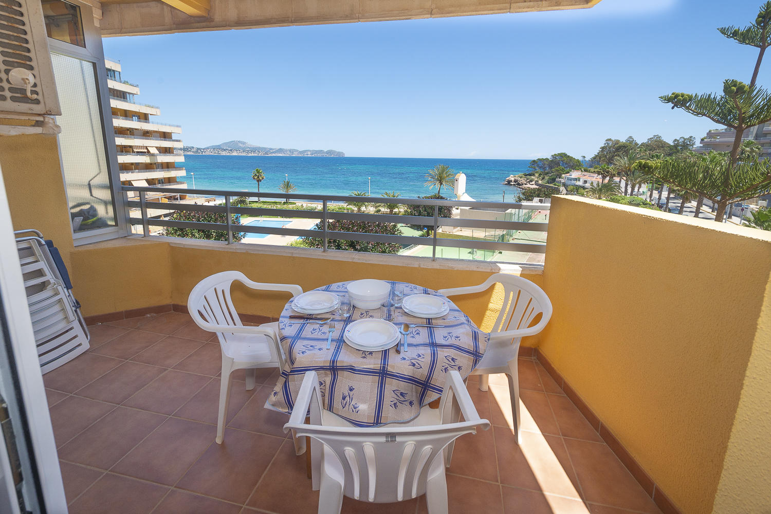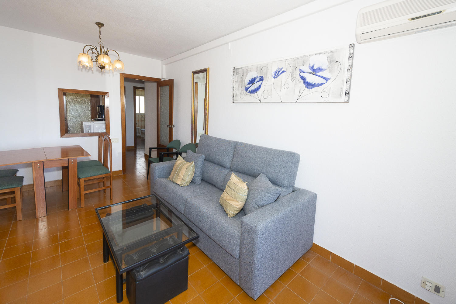 Apartamento de dos dormitorios con aire acondicionado en el edificio Voramar, en el paseo marítimo de La Fossa y con vistas al mar.