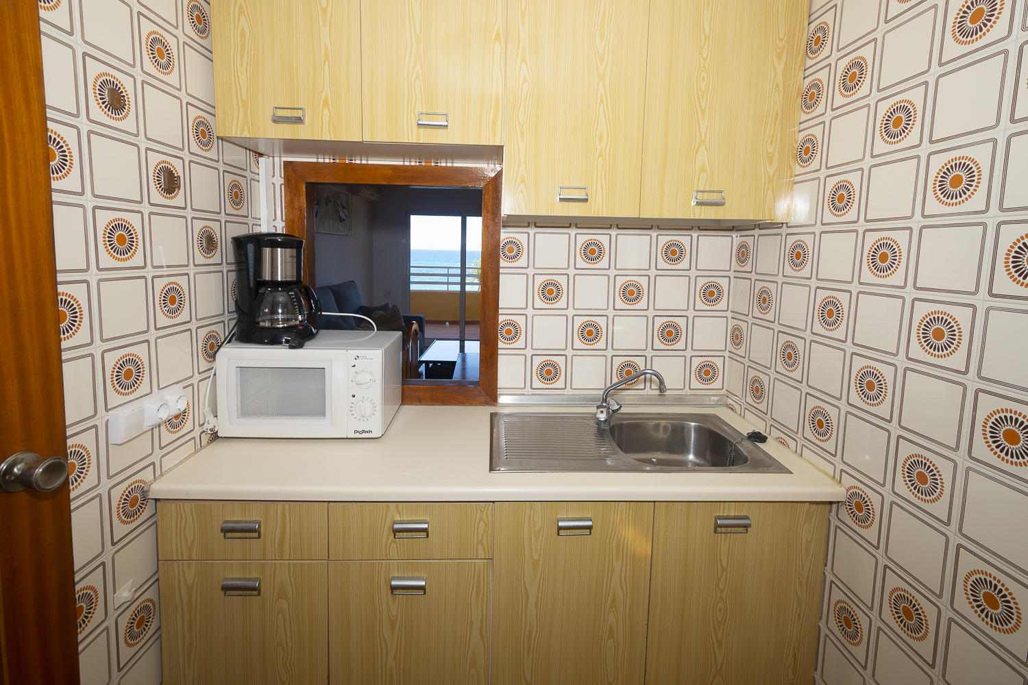 La cocina americana está totalmente equipada con todo lo necesario para cocinar. Sin horno.