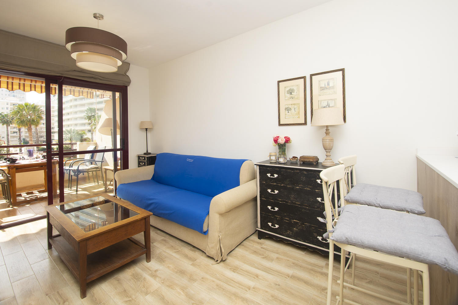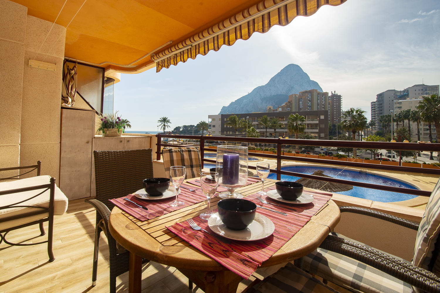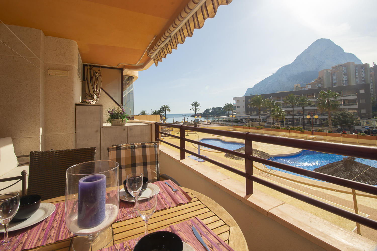 La terraza ofrece magníficas vistas al mar y al Peñón de Ifach.