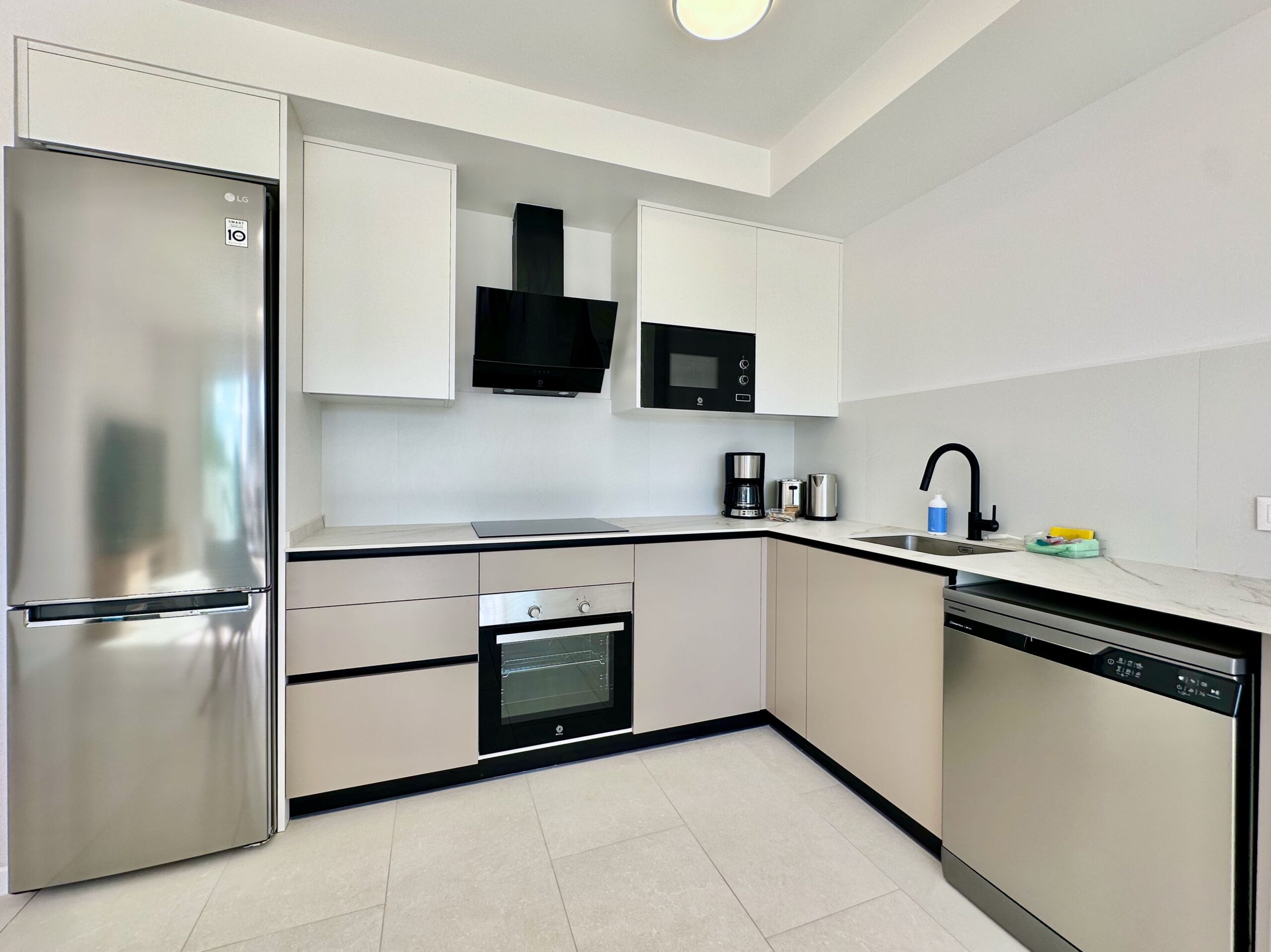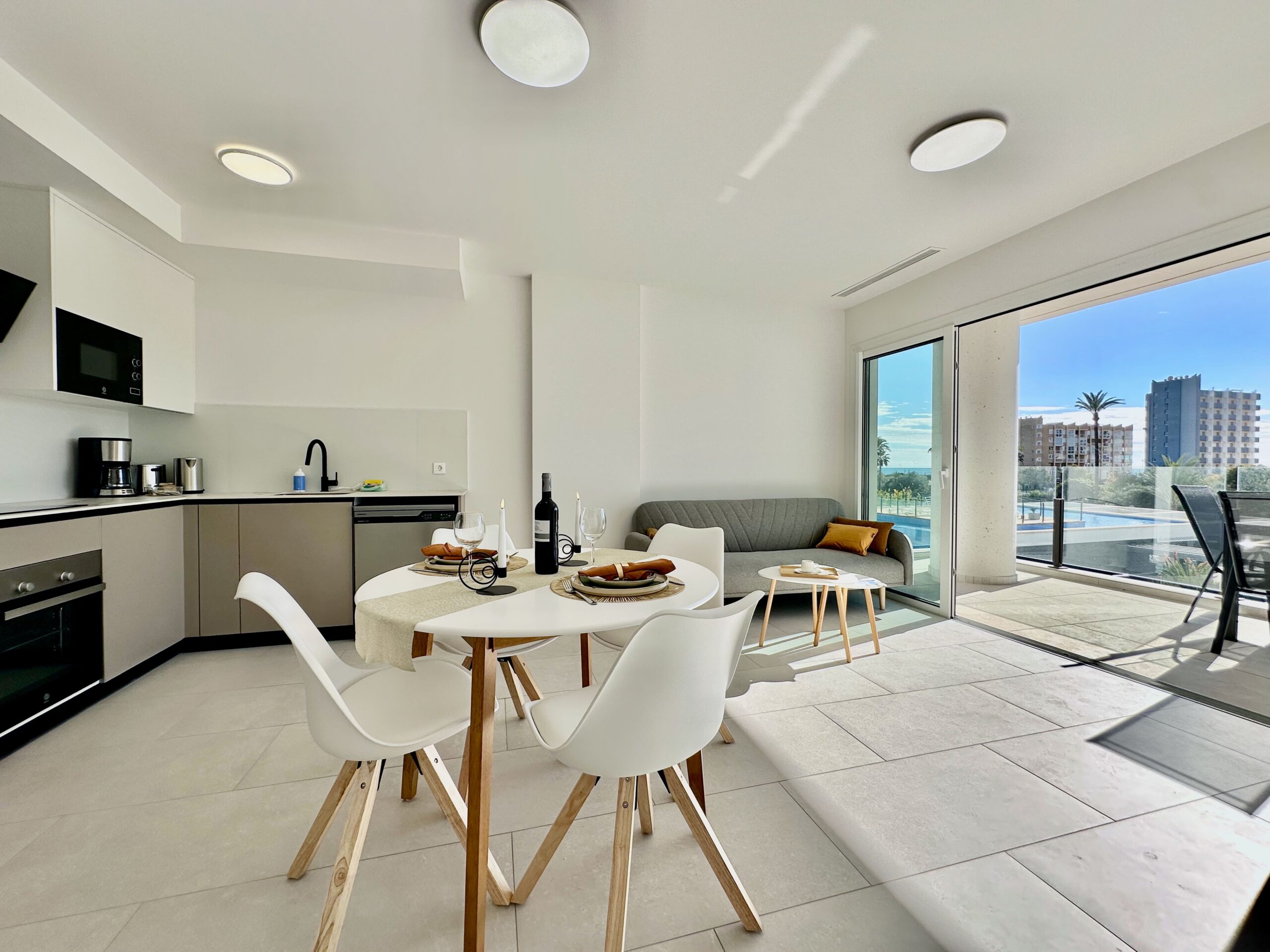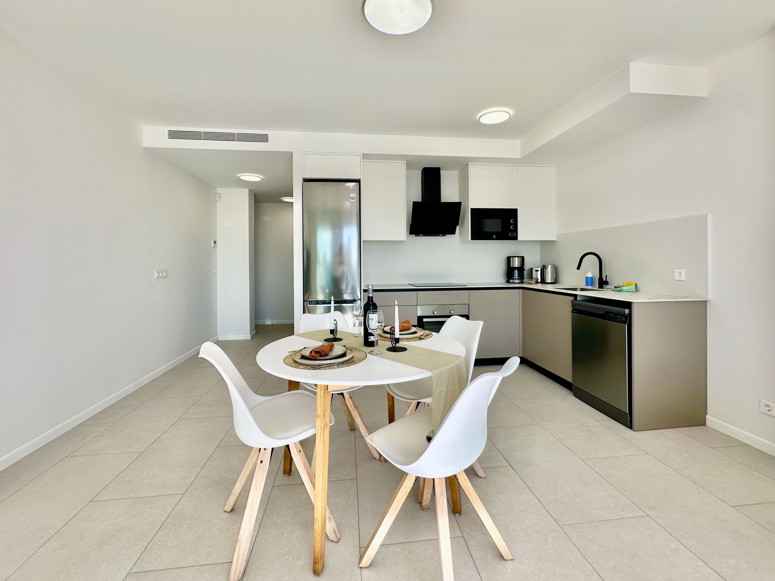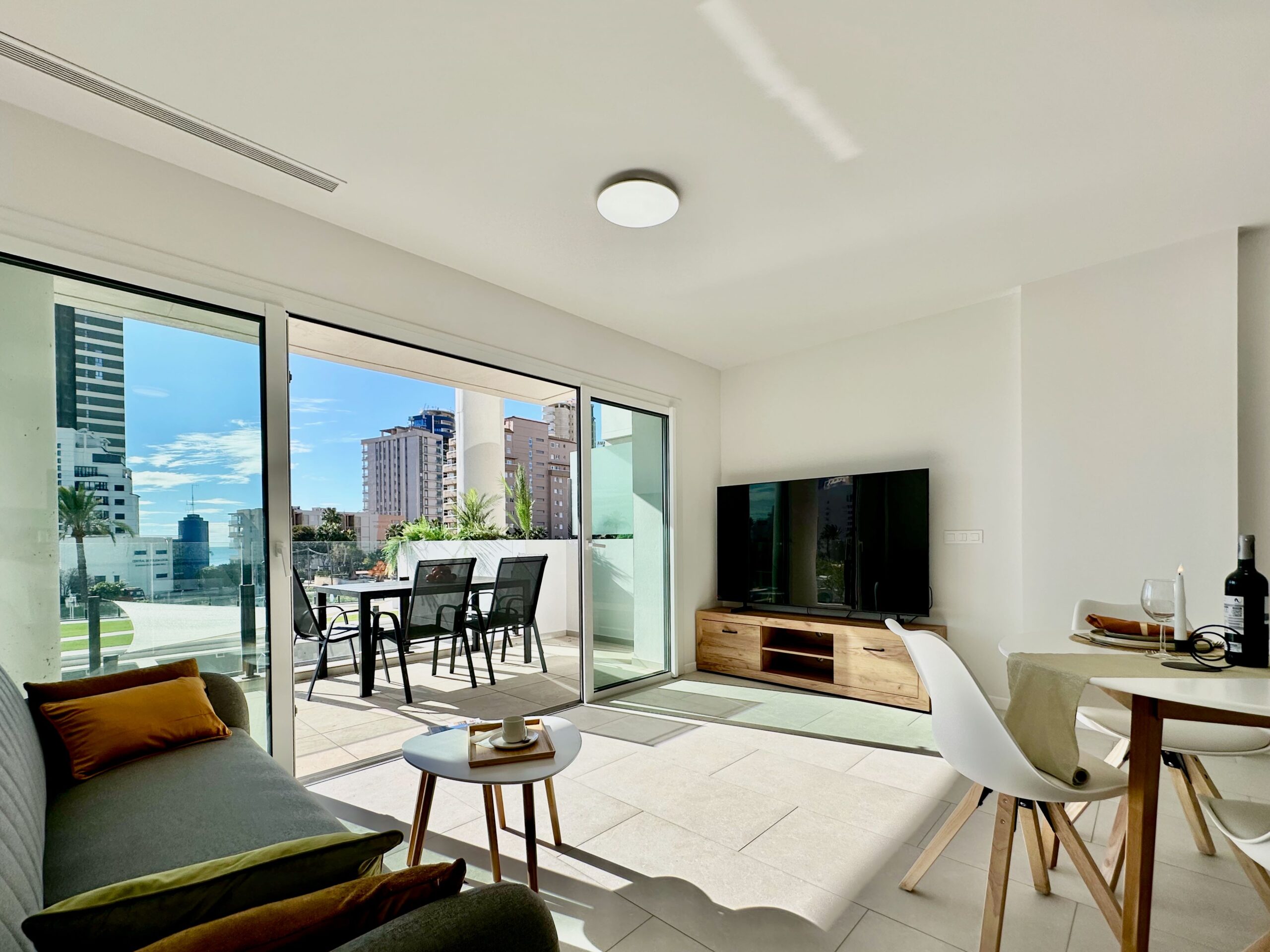 Moderno y confortable apartamento de 2 dormitorios, diseñado para una estancia confortable de cuatro personas. Ubicación central. A 5 minutos andando al mar, paseo peatonal con cafeterías y restaurantes. El centro de la ciudad de Calpe está a 7 minutos a pie. En el precio del alquiler están incluidos tu propia plaza de aparcamiento en el aparcamiento subterráneo del edificio e Internet WiFi (fibra óptica).