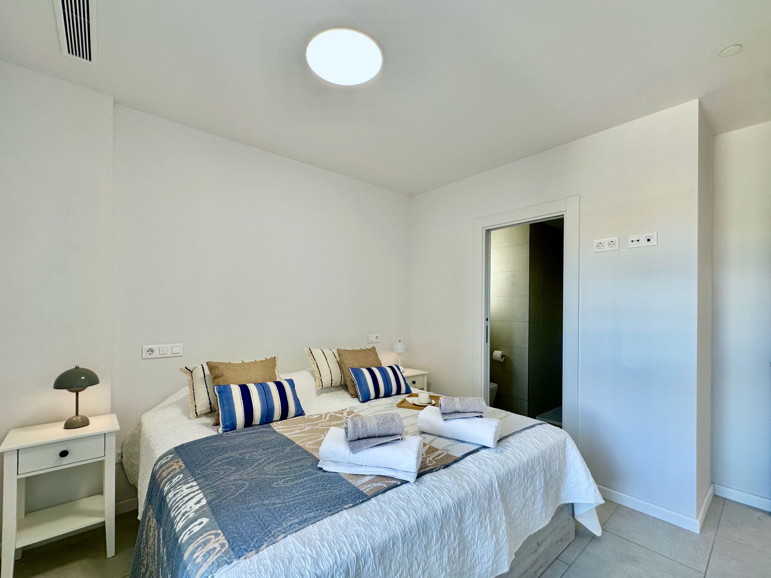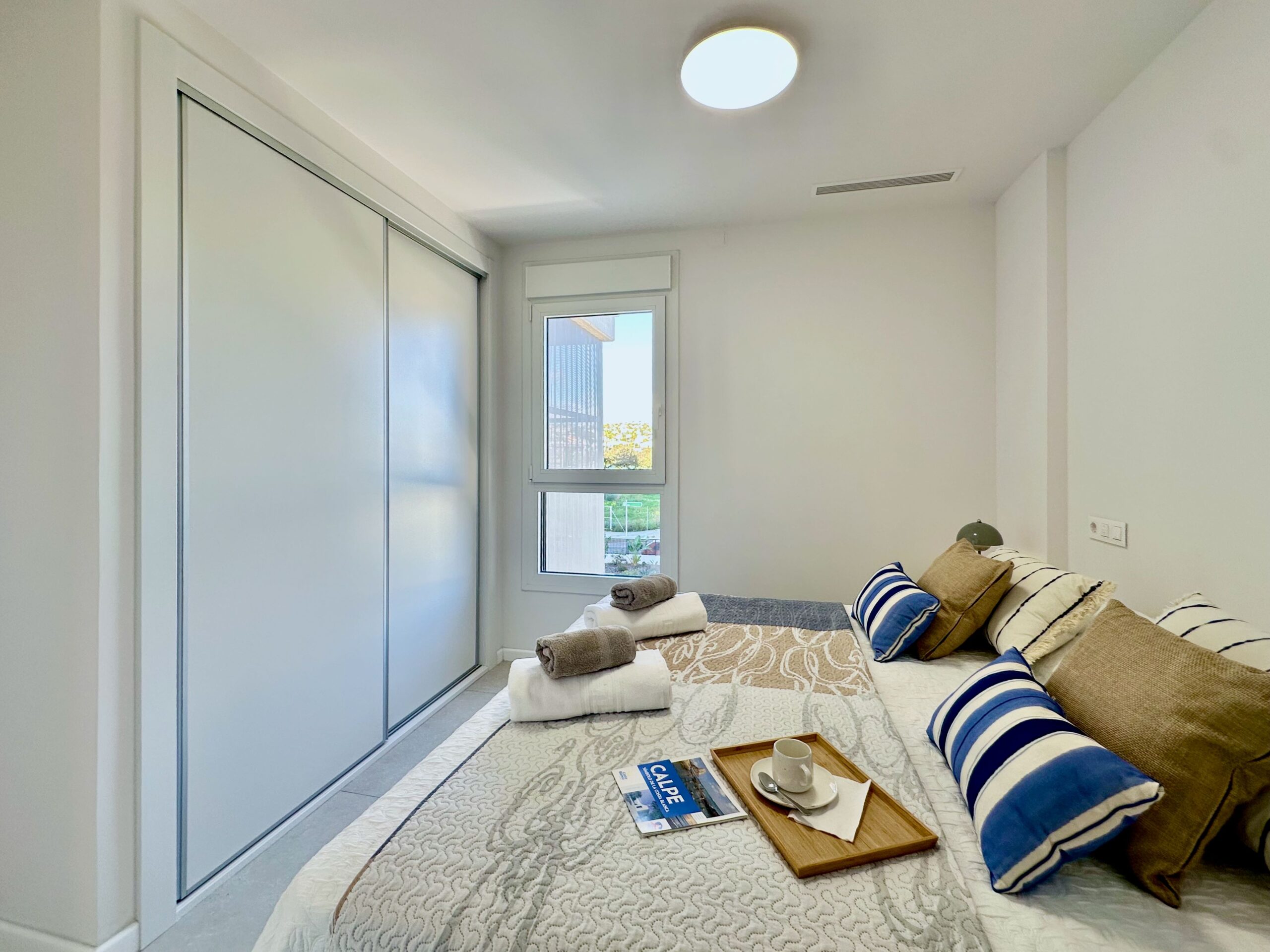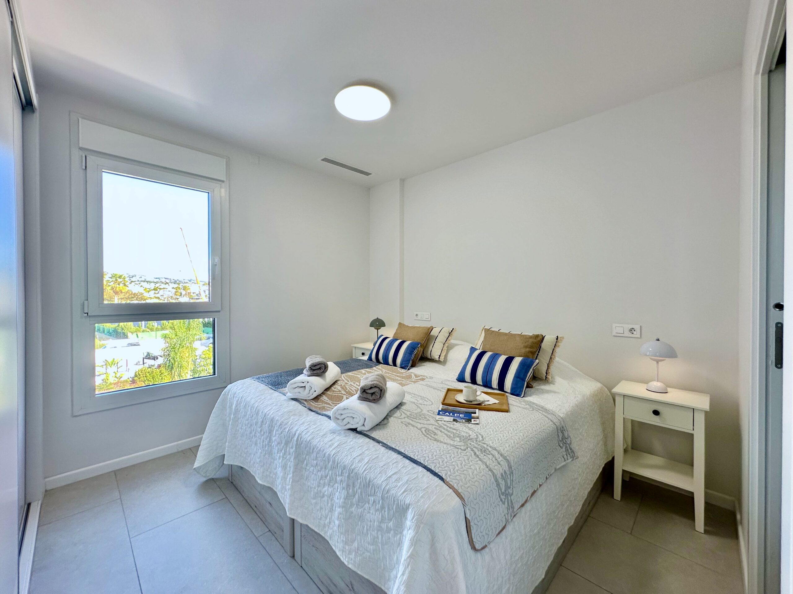 Un moderno apartamento de 2 dormitorios diseñado para alojar cómodamente a cuatro personas. El nuevo complejo residencial Silver Tower (construido en 2023) se encuentra a 5 minutos andando de la playa del Arenal Bol, así como del puerto de Calpe. Apartamento en el 2do piso. Vista al mar. Totalmente climatizado, cocina equipada con todo lo necesario. Amplia terraza. Cada año las playas de Calpe reciben la Bandera Azul. Todo está a poca distancia: un supermercado a 5 minutos a pie, una parada de autobús, cafeterías y restaurantes a lo largo de todo el terraplén. Internet WiFi (fibra óptica) está incluido en el precio del alquiler. Espacio en el aparcamiento subterráneo del edificio. El puerto de Calpe, con sus famosos restaurantes de pescado, se encuentra a 5 minutos a pie. Hay un paseo peatonal a lo largo de toda la playa, donde hay cafeterías, restaurantes y tiendas.