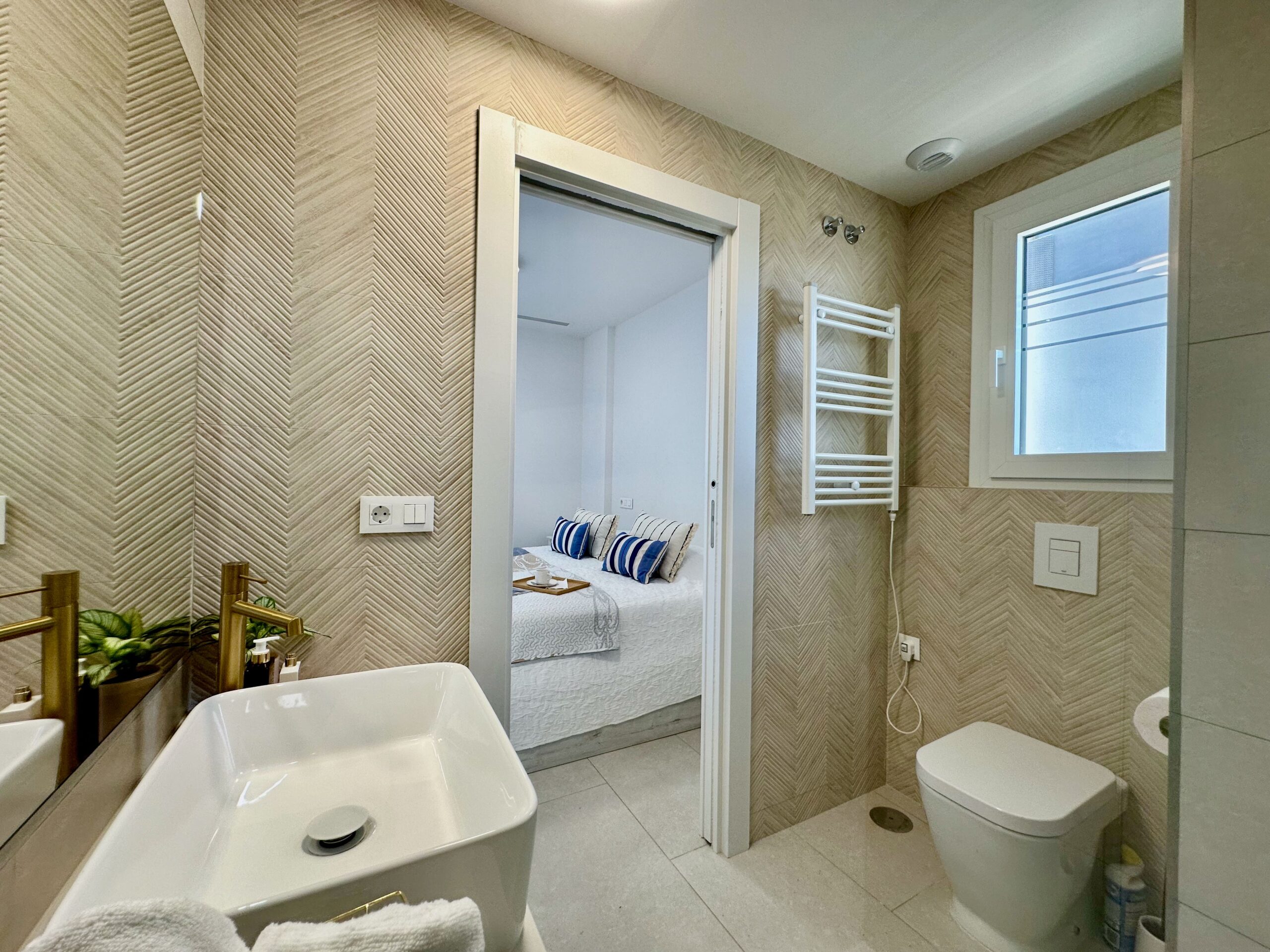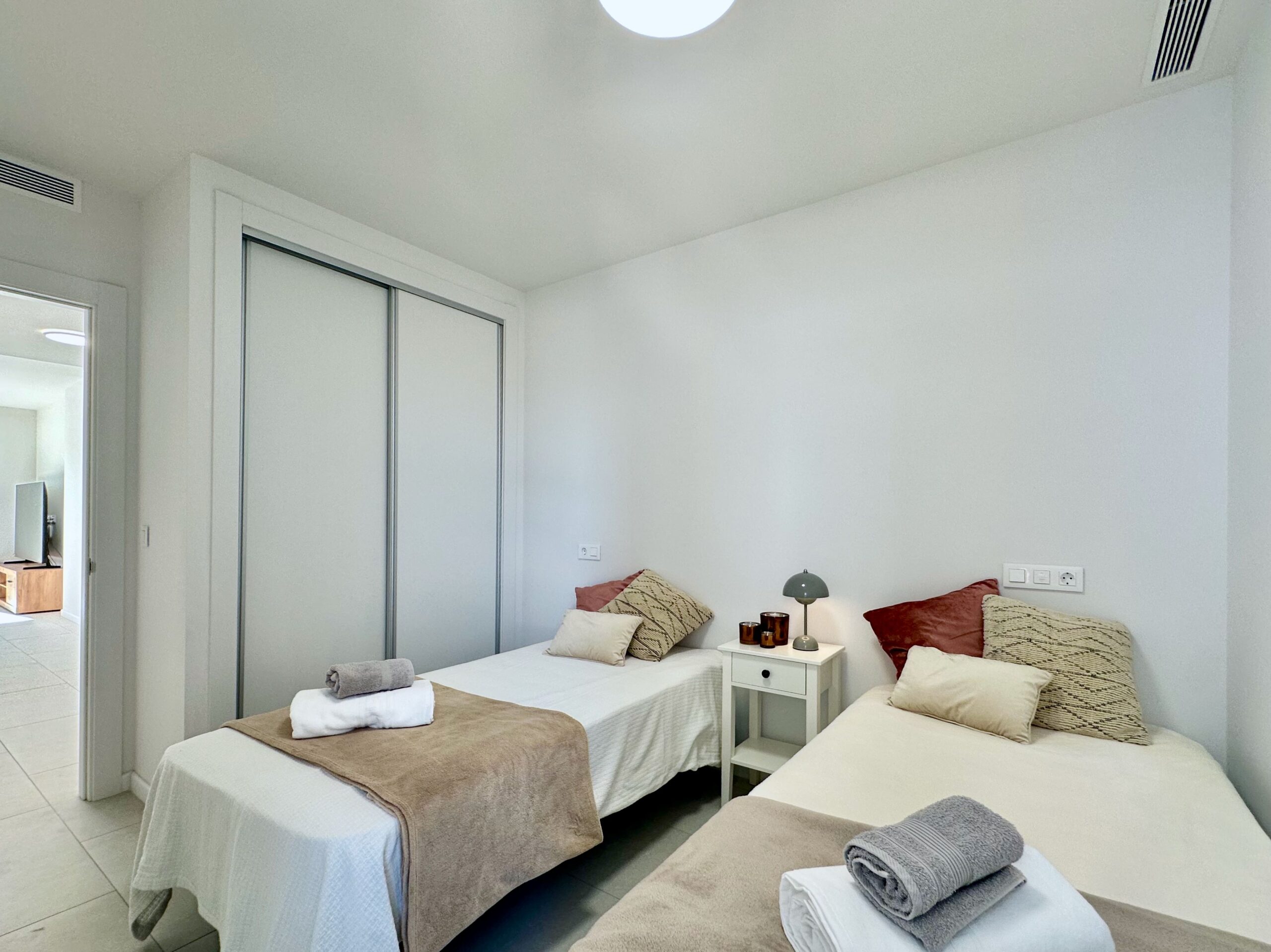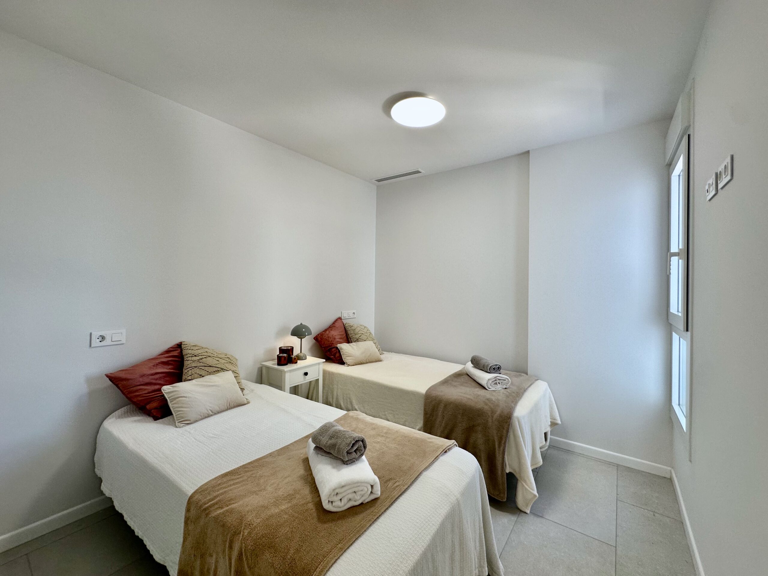 Un moderno apartamento de 2 dormitorios diseñado para alojar cómodamente a cuatro personas. El nuevo complejo residencial Silver Tower (construido en 2023) se encuentra a 5 minutos andando de la playa del Arenal Bol, así como del puerto de Calpe. Apartamento en el 2do piso. Vista al mar. Totalmente climatizado, cocina equipada con todo lo necesario. Amplia terraza. Cada año las playas de Calpe reciben la Bandera Azul. Todo está a poca distancia: un supermercado a 5 minutos a pie, una parada de autobús, cafeterías y restaurantes a lo largo de todo el terraplén. Internet WiFi (fibra óptica) está incluido en el precio del alquiler. Espacio en el aparcamiento subterráneo del edificio. El puerto de Calpe, con sus famosos restaurantes de pescado, se encuentra a 5 minutos a pie. Hay un paseo peatonal a lo largo de toda la playa, donde hay cafeterías, restaurantes y tiendas.